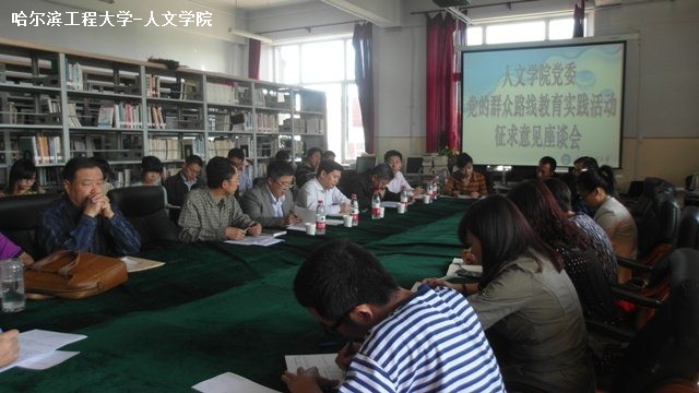 9月11日下午2点,人文学院在41号楼408会议室召开“党的群众路线教育实践活动”征求意见座谈会。校党委副书记高晚欣、党建研究室正处级调研员赵镇、人文学院院长金宏章、人文学院党委书记王玉�、人文学院党委副书记杨国庆、人文学院副院长郑莉、人文学院院长助理曲晓丽、人文学院教职员工代表以及学生代表出席本次座谈会。