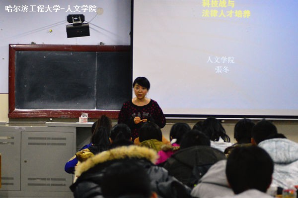 12月4日下午4时,人文学院于11号楼0123中教室举办主题为“科技战与法律人才培养”的普法专题讲座。20131311班班主任张冬担任主讲,人文学院党委副书记杨国庆受邀出席,2013级全体法学专业学生参加讲座。