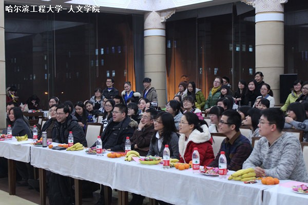 12月24日18时整,人文学院社会学系全体师生于启航活动中心四楼的教师沙龙举行了第一届联欢晚会。人文学院党委书记王玉�、党委副书记杨国庆、副院长郑莉、社会学系主任刘军、副主任刘辉、社会学系老师于涛、李艳春、张翼飞、111341班班主任赵岩、121341班班主任赵德雷、131341班班主任唐国建受邀出席。