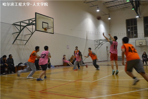 伴随着哨声响起,双方迅速进入状态。比赛伊始,双方不相上下,但随着比赛的进行人文学院比分逐渐落后于理学院。中场休息时,双方对队员进行调整,体育部副部对队员进行指导。随后,在拉拉队的助威下,人文学院得分与理学院仅仅相差2分,比赛进入白热化阶段。哨声再次想起,上半场结束,在队员休息期间,队长布置战略战术。紧接着,双方交换场地,比赛非常激烈,双方你追我赶,人文学院仍旧以2分之差落后于理学院,尽管人文学院队员奋力拼搏,由于理学院投球精准,最终,人文学院不敌理学院而落败。