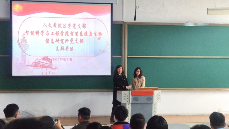 2021年5月11日14时,人文学院法学党支部和智能科学与工程学院智能系统与生物信息研究所党支部的支部共建活动在主楼N301教室正式举行。本次活动由人文学院法学党支部书记刘沫茹老师组织,旨在通过党支部共建,加强人文学院与智能科学与工程学院党支部间的沟通交流,促进党支部党建形式的多元化。法学系基学负责人袁雪、教师张明明、关健及智能系统与生物信息研究所基学负责人冯伟兴、党支部组织委员唐墨、教师栾宽出席本次活动,人文学院及智能科学与工程学院的部分本科生、研究生参加了此次活动。