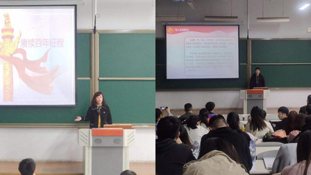 刘沫茹老师和高天书同学以“传承铁人精神,赓续百年征程”为题,从什么是铁人精神、铁人精神形成的历史背景、铁人王进喜的先进事迹和铁人精神的深刻内涵四个部分展开,详细的讲述把师生们带回到了那个条件极其恶劣、石油工人却有着昂扬的艰苦奋斗精神的年代。师生们对铁人王进喜的先进事迹感叹不已,更被铁人精神深深震撼。通过铁人精神的宣讲,对铁人精神有了全面的认识,对铁人精神的深刻内涵有了更深层次的了解,对以铁人王进喜为代表的党员的爱国精神和无私奉献精神有了更崇高的敬意。