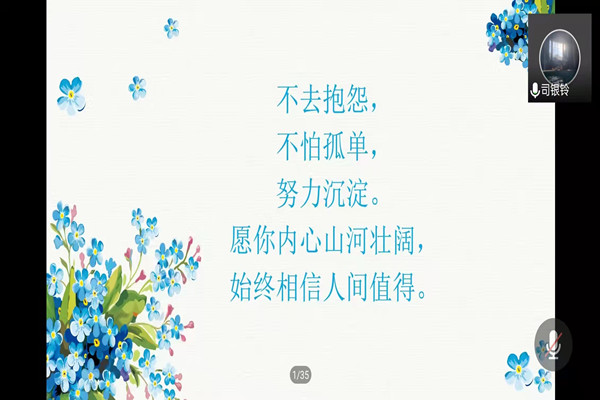 在分享会的最后,辅导员刘文璟和周鹏老师依次致辞,语重心长地提出学生们应将学习作为第一要务,鼓励同学们有效利用本次会议搭建的信息交流平台,更是表达了对备战保研和考研同学的殷殷期待和美好祝愿。在分享会的结尾,刘沫茹老师还准备了惊喜彩蛋,联系了已经成功保研和考研的刘奕彤、过怡安、娄世超、孙佳灵四位优秀的学长学姐,以短视频的形式为同学们送上诚挚的祝福和热情的鼓励。