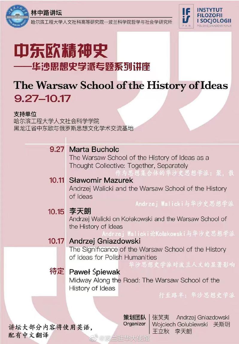 据悉,波兰驻华大使馆对本次“华沙思想史学派”系列讲座热切关注,专门在其官方微博平台转发了相关信息。中波高校围绕此类议题开展合作尚属首次,这对增进国内学界即时了解和掌握当今波兰哲学社会科学思想理论热点和发展趋向、拓展中波学界文化与学术交流,助力我校学生人文精神、人文素养培育等方面均有重要意义。