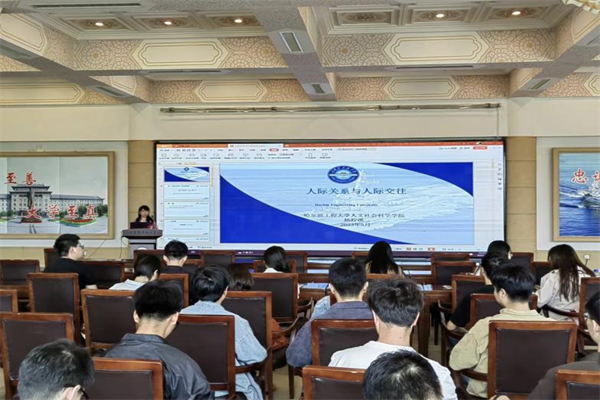 杨柠溪以“人际关系与人际交往”为主题,以大学生心理咨询为切入点,通过播放视频和列举案例等方式介绍构建良好的人际关系和培养人际交往能力的重要性,围绕校园爱情、师生沟通等话题与现场同学进行交流互动,并希望同学们保持热爱,怀揣信仰,勇于寻求心理支持,敢于接受生活挑战。