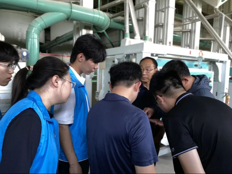 7月9日,实践团来到道外区水稻深加工的龙头企业——喜田水稻加工厂进行实地调研。加工厂负责人田永增热情地欢迎了来访的各位,并引领大家进入水稻加工厂参观工作现场。他亲自为大家讲解水稻筛选-拨壳-分离-碾米-精筛等流程,向大家展示不同加工阶段的稻米外观。实践团成员不禁感叹,科技的进步和生产自动化已深入到前进村农作物培育、生产和加工的各个环节。