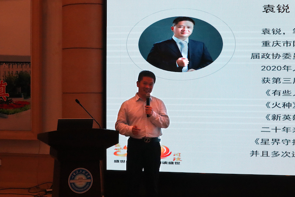 袁锐、孙剑校友分别发表讲话。二位从各自的求学经历及校园生活出发,追忆往昔文学创作生涯、勉励在座的学弟学妹,并祝贺母校生日快乐,预祝此次文学作品创作大赛成效斐然、取得圆满成功。