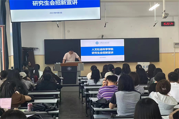 参观结束后,新生在研究生会的带领下,于11号楼0124教室举办学生组织招新宣讲会,由研究生会主席鞠宇豪和党建中心副主任钮世玮为新生介绍人文学院组织基本情况,为新生搭建最佳的综合能力平台,介绍完毕后,新生对于学生组织有了更透彻的认知。