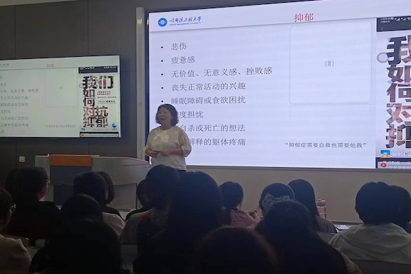 讲座伊始,蔡丽列举了一些大学生出现相关心理问题的案例;然后,结合实际情况为学生们提供了调解心理情绪的具体方法。她表示大家初入陌生环境产生负面情绪是非常正常的,在恢复调整期和适应掌握阶段养成新的习惯后就可以走出迷失状态。