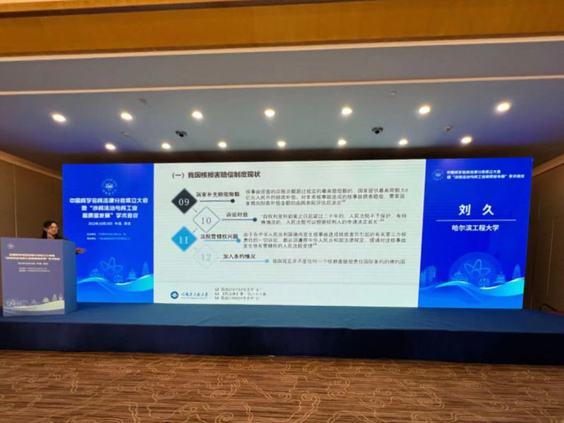 在会议的学术交流环节,共九位专家围绕“涉核法治与核工业高质量发展”有关理论和实务问题进行报告和交流,其中我院刘久教授作了题为“论我国核损害赔偿制度的构建”的报告,与会各位专家对于凝聚推动核工业在法治轨道上实现高质量发展达成了共识。