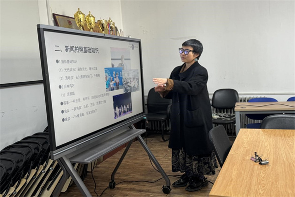 随后,赵丰在新闻照片的拍摄方面进行了培训,讲解了新闻所使用照片的拍照方法,指出对各主体的不同的拍照技巧,强调照片必须清晰美观、主次分明、构图合理,及时发现并处理存在的问题。