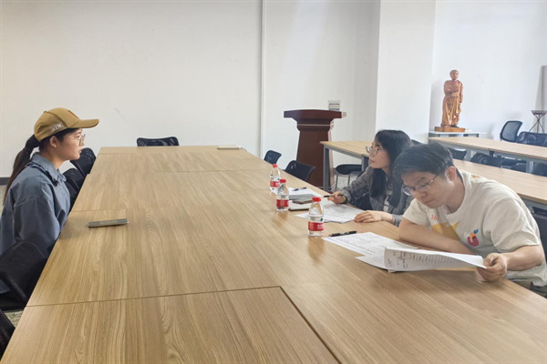 “青年参与与乡村全面振兴的路径探索和实践研究”赛题队员选拔于主楼311室进行,社会学系教授唐国建、柳建坤、副教授徐娜担任评委,就面试者的比赛经历、获奖情况、个人优势、时间管理能力以及对乡村的了解程度等方面进行综合考量。