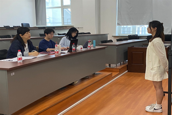 “数字时代网络暴力信息的风险治理路径”赛题队员选拔于N301室进行。法学系副教授刘沫茹担任主评委,围绕着对网络暴力的认识、相关法律规定、个人优势以及选择该项目的原因进行提问。