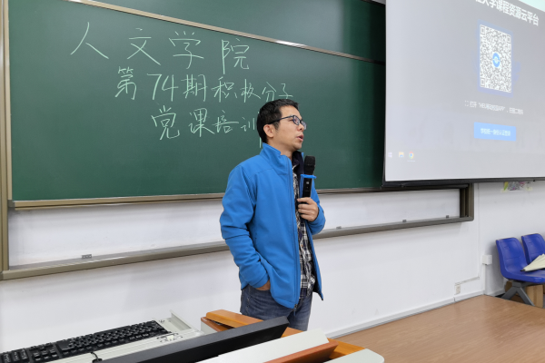10月23日下午1时30分,人文学院于S楼102室举办第30期人文思政讲堂暨第74期入党积极分子培训。本次培训主题为“坚定红色信仰,服务人民群众”,由我院教授唐国建主讲,人文学院、联合学院、马克思主义学院第74期入党积极分子参加。