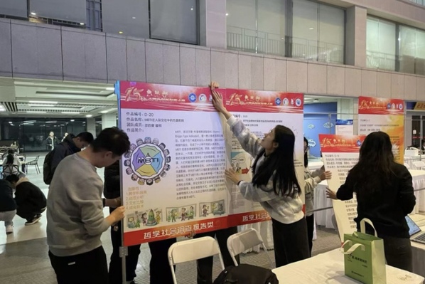 本次“启航杯”创新创意大赛共有193个作品参与作品展示,作品的类别包含科技前沿文献综述类、未来技术概念类、创客创意发明制作类等。人文学院参赛作品的类别主要属于哲学社会调查报告类,如:“MBTI在人际交往的负面影响”、“农村数字普惠金融的现实困境及路径完善”、“法治社会下对婚姻陋习的认识与反思”等。在决赛布展区,人文学子展示自己的参赛作品,以饱满的热情和独特的创意展现了大学生的科技创新能力。