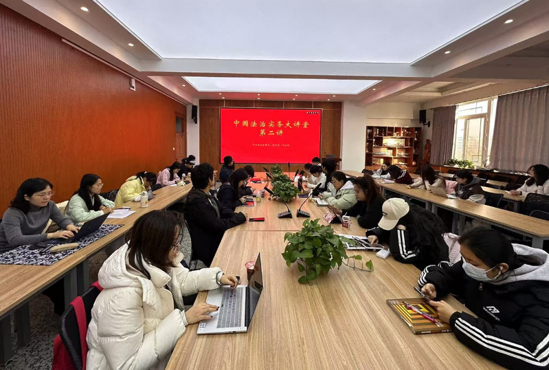 2024年12月12日上午,人文学院副院长杜宇鹏,法学专业基层学术组织负责人袁雪及相关师生,积极响应中央依法治国办、教育部、司法部的号召,在主楼311会议室,通过线上直播的方式观看了中国法治实务大讲堂第二讲。此次大讲堂邀请了全国人大常委会法工委研究室主任、法工委发言人黄海华,围绕《完善以宪法为核心的中国特色社会主义法律体系》进行专题授课。