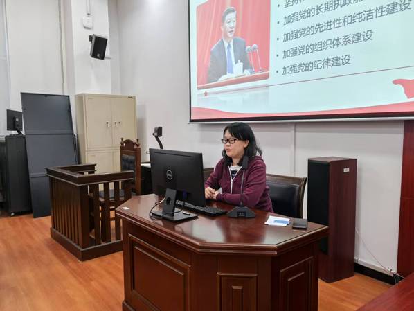 首先,王韵涵以“习近平法治思想与涉外法治建设”为主要讲述内容,结合习近平法治思想精髓成果进行了讲授,意在帮助党员发展对象深入理解习近平法治思想的核心要义。她结合自身国际法专业方向实践,就国际法与国际关系、国际政治等进行讲授。她强调,习近平法治思想不仅在国内法治建设中具有指导意义,在国际法治领域也展现出独特的中国智慧和中国方案。