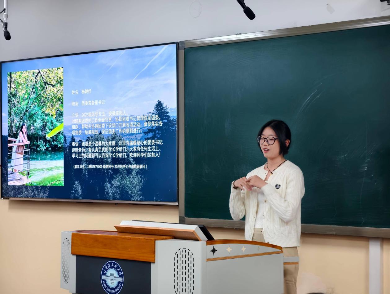 最后,辅导员兼团委书记赵晴对本次宣讲进行总结。她鼓励同学们根据自身兴趣与特长积极选择参与学生组织,并叮嘱大家尽快调整状态,适应大学学习与生活的节奏,合理规划时间,兼顾学业与实践,收获充实而精彩的大学生活。