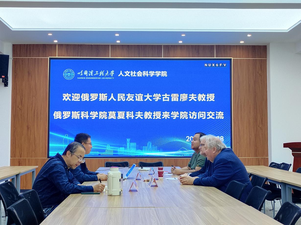 杜宇鹏对古雷廖夫教授和莫夏科夫教授的到访表示热烈欢迎,并详细介绍了学校和学院的总体情况,特别着重介绍了学院近年来在国际交流合作方面所取得的显著成就。他强调,与俄罗斯高校及科研院所合作一直是学院国际化战略的重要推进方向。近年来,在校级和院级领导的关怀与支持下,学院已与俄罗斯科斯特罗马国立大学、俄罗斯科学院东方学研究所、俄罗斯科学院中国与当代亚洲研究所签署了战略合作协议,并展开了包括人员互访、期刊合作、联合发表学术论文及举办学术会议等实质性合作。最近,学院又与俄罗斯远东联邦大学人文学院建立了合作关系,并同样期待与俄罗斯人民友谊大学人文学院展开深入的交流与合作。