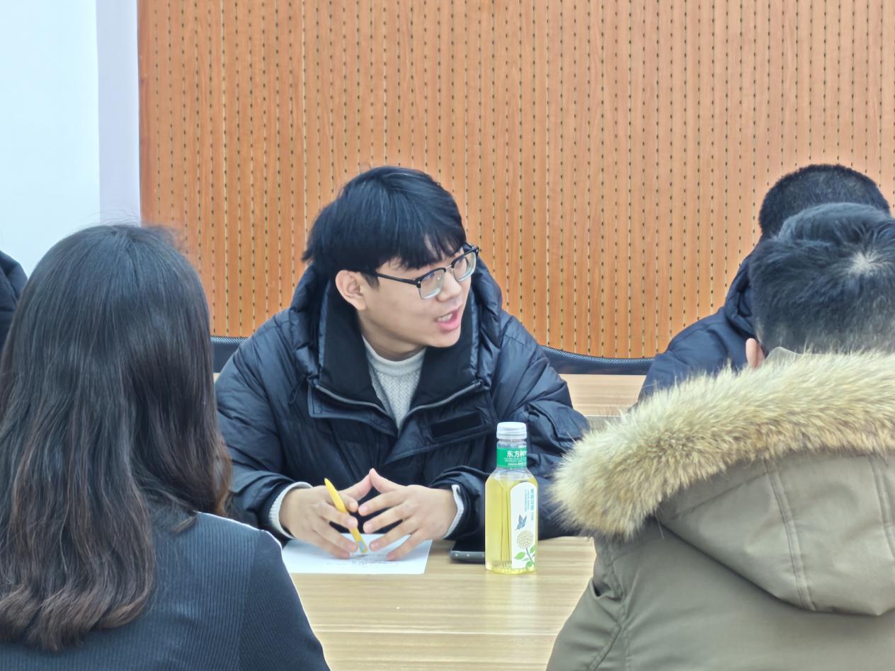 党委书记崔彬认真倾听、详细记录了每一位同学的发言,并频频与同学们互动交流。他首先代表学院亲切问候大家,格外关心同学们临近期末的学习生活与心理状态,细致询问复习备考情况,叮嘱大家要科学规划、张弛有度,保持身心健康,并特别强调了诚信应考的重要性,引导同学们在学业考验中锤炼品格。崔彬指出,同学们提出的意见建议情真意切、务实中肯,反映了青年一代的所思所盼,是学院改进工作、优化服务的宝贵财富。他结合同学们的发言,深入阐述了专业学习与思想成长、个人理想与国家命运之间的深刻联系,鼓励同学们要坚定理想信念,夯实专业根基,主动将学习奋斗的具体目标同民族复兴的宏伟目标结合起来。崔彬书记表示,学院党委高度重视学生的意见建议,将系统梳理、逐项研究,推动落实,并及时反馈进展,确保沟通渠道永远畅通,关爱举措落到实处,切实把“小程聊天”的成果转化为育人育才的实效,让同学们切实感受到关爱与成长。