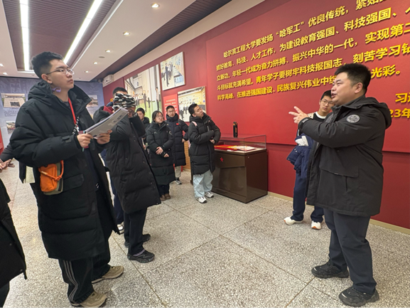 在哈军工纪念馆,同学们驻足于泛黄的笔记本展柜前,仔细端详着“哈军工”时期学子们工整的学习笔记,透过这些珍贵文物感受着学校治学传统与厚重的历史底蕴。在船舶博物馆,讲解员为每位同学发放研学手册,同学们边参观边记录,遇到问题主动请教,通过参观了解了船舶发展历史、船舶结构等知识,学习氛围浓厚。
